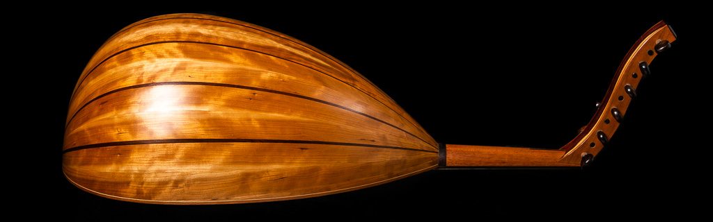 Long-scale Irish bouzouki. 25” scale length. Teardrop body design.